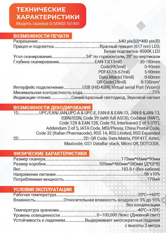Новый 2D сканер штрих-кода G-SENSE IS1401G с фирменной технологией сканирования «Intellectual Scanning» с легкостью распознаёт популярные 1D и 2D коды, включая DataMatrix. В том числе поврежденные, малоконтрастные и под плёнкой. Сканер прост в использовании и настройке. Имеет инструкцию на русском языке.